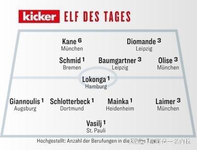 德媒评选德甲13轮最佳阵:凯恩领衔,红牛前锋迪奥曼德在列